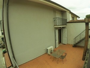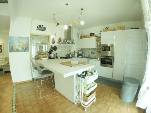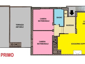 PIANO PRIMO – Caratteristico ingresso finestrato, soggiorno doppio con cucina abitabile OPEN SPACE e prima terrazza, due camere matrimoniali, bagno finestrato, ripostiglio e DUE GRANDI TERRAZZE ABITABILI tergali collegate anche esternamente col giardino;